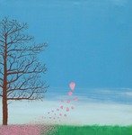 2012Wanneer de bloesem afgewaaid is, ligt het gras bezaaid met roze blaadjes. Nu zal het nieuwe groen en de lente komen.